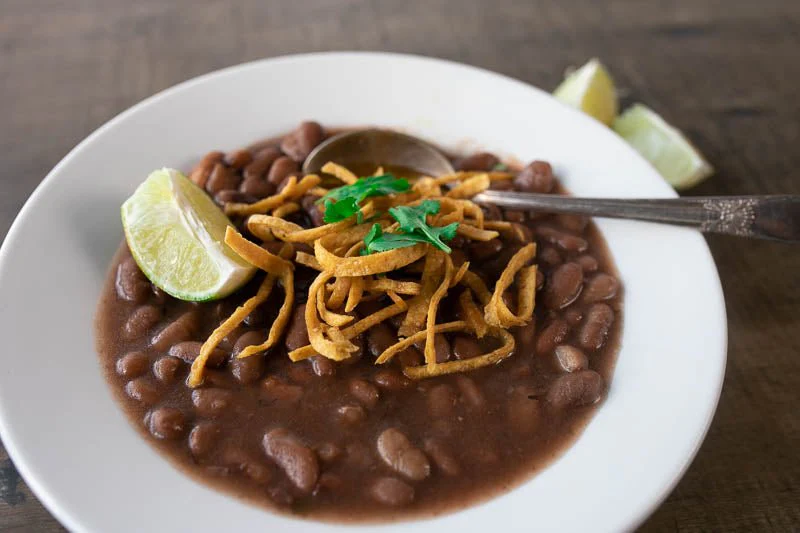 In Mexico, a rebozo is a shawl, often worn with panache by Mexico's lovelier residents. Perhaps if you were totally drunk you might think these pretty beans resemble a shawl, but who knows? Who cares? It's fun to say the word rebozo and it's more fun to eat these delicious beans. They have a rich bean broth and can be used in place of any traditional Mexican bean in recipes, especially refried beans.